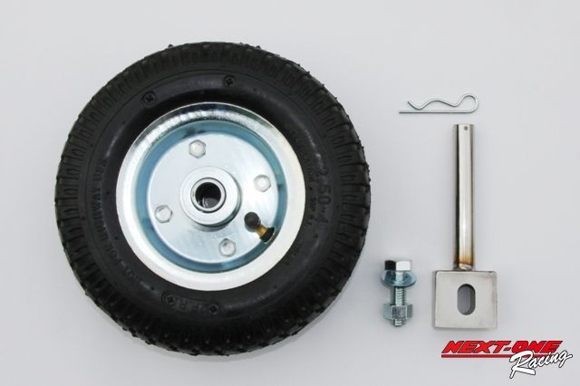レーシングカートやスポーツカートで使用されるアルミカートスタンド用の大型キャスター(タイヤ)です。