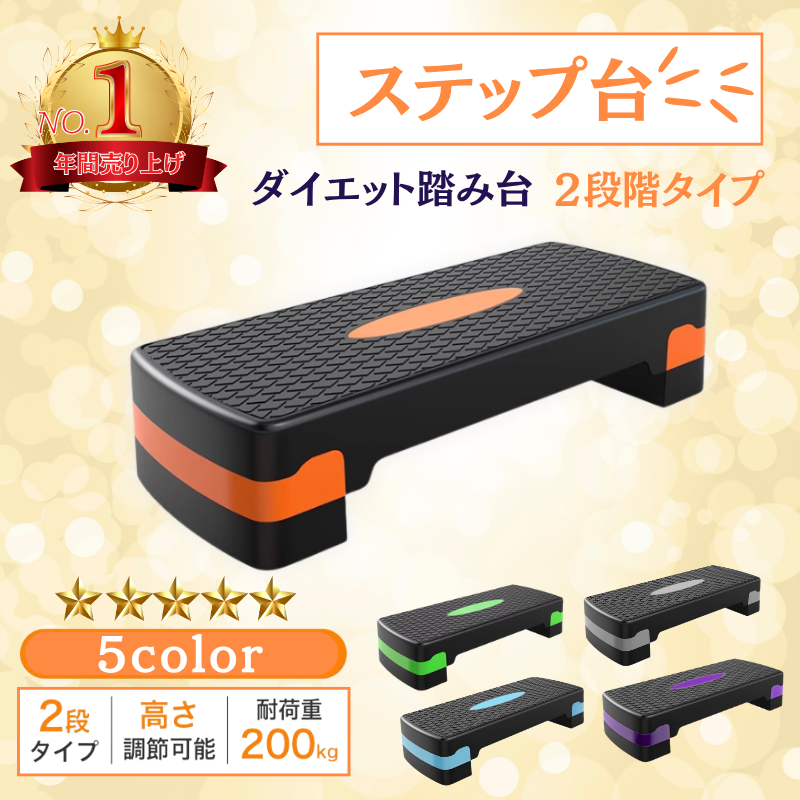 商品名:ステップ台 踏み台 2段 昇降 フィットネス 簡単 滑り止め 安全 トレーニング 運動 高さ調節 家庭用 エクササイズ