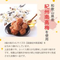 4Lサイズの大粒で果肉たっぷりの完熟紀州南高梅を、減塩3%のはちみつ味で作りました。