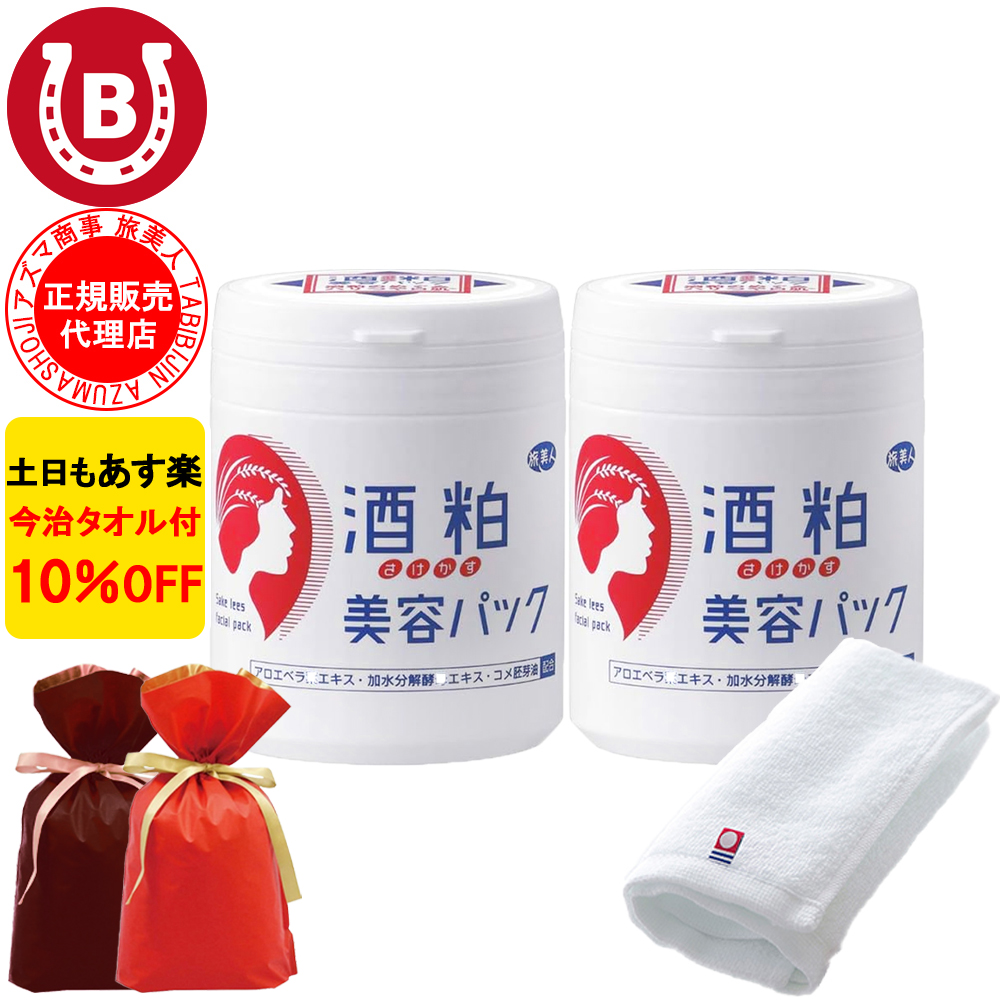 ラッピング付き 酒粕美容パック 2個セット 200g アズマ商事 酒粕 パック 洗い流すタイプ フェイスパック 旅美人 10%OFF 今治タオル付 爆買