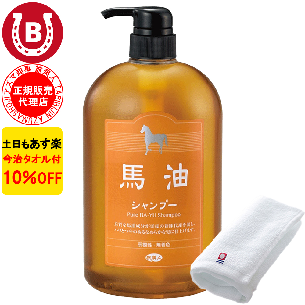 馬油シャンプー アズマ商事 ボトル 1000ml 大容量 旅美人 10%OFF 今治タオル付 ばーゆ
