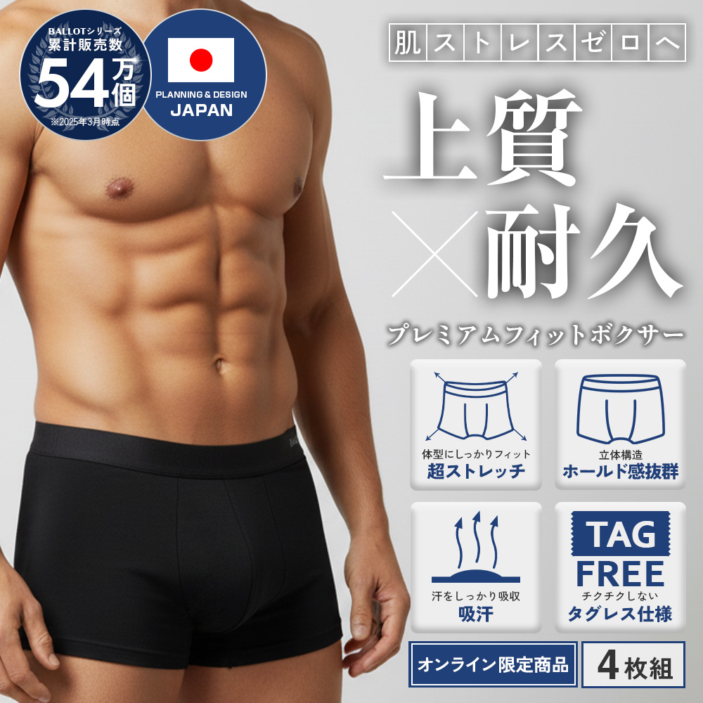 ボクサーパンツ メンズ 下着 無地 ボクサーブリーフ 吸水速乾 4枚セット BALLOT