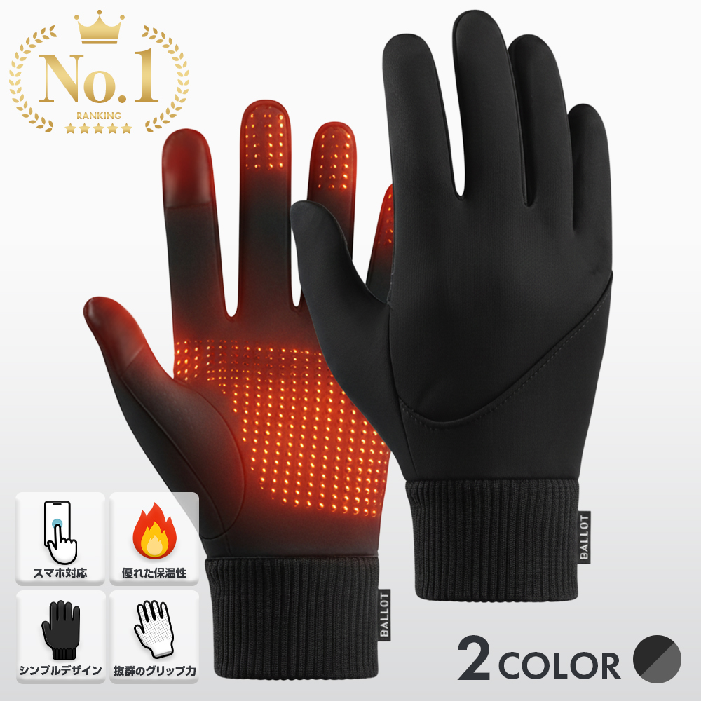 手袋 メンズ スマホ対応 防寒手袋 裏起毛 防水 てぶくろ 男女兼用 BALLOT バロット