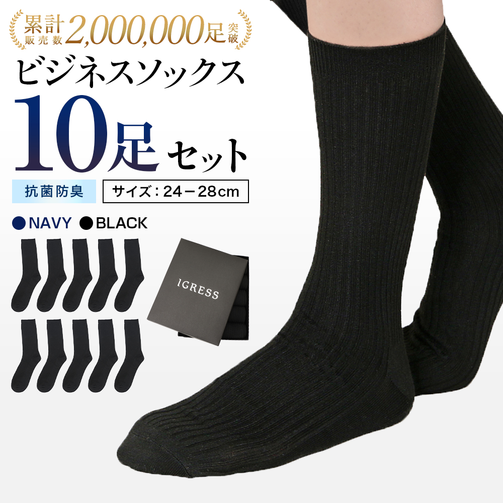 靴下 メンズ ソックス ビジネスソックス 抗菌防臭 10足セット 黒 ギフト プレゼント 24-28cm IGRESS イグレス