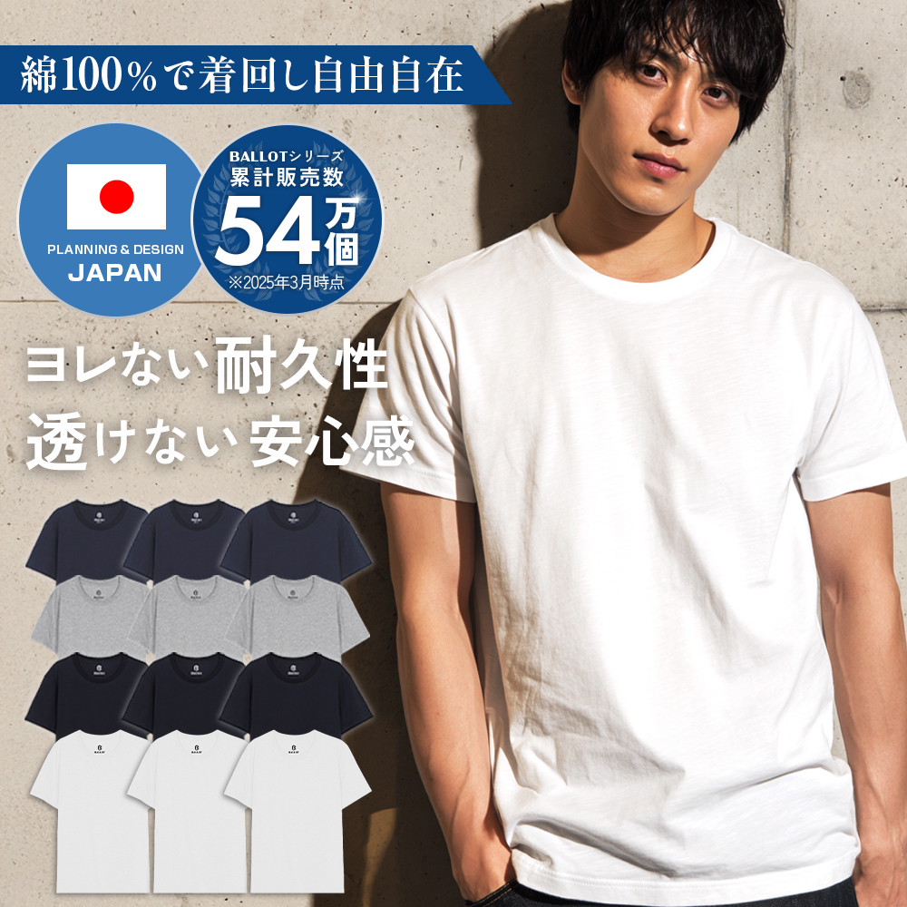 tシャツ メンズ 半袖 無地 厚手 Tシャツ ヘビーウェイト 3枚組 白 黒 ドライ 大きいサイズ まとめ買い BALLOT バロット