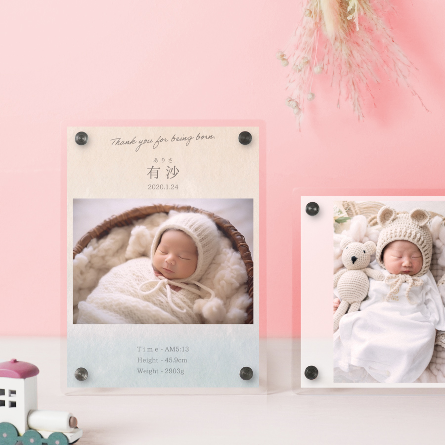 フォトフレーム 写真立て シンプル 命名 命名書 アクリル 出産祝い 誕生日 赤ちゃん ベイビー 七五三 名入れ 名前入り フォト スタンド 写真入れ 卓上 透明
