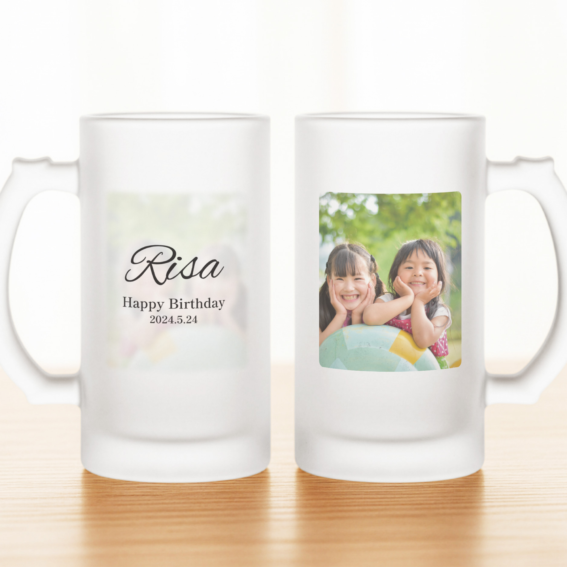 ビールジョッキ 写真 両面 名前入り 名入れ メッセージ 500ml ジョッキ グラス コップ ビール 中 中ジョッキ ガラス 取っ手付き 名前入れ 名入り オリジナル