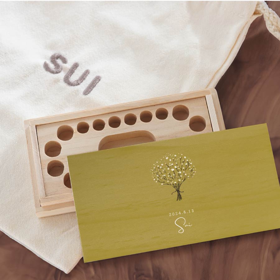 名入れ 刺繍巾着袋付き乳歯ケースセット かすみ草 巾着袋 乳歯ケース セット 出産祝い 乳歯入れ 木製 名前入り 木箱 入れ物 保管 歯 小物入れ 内祝い
