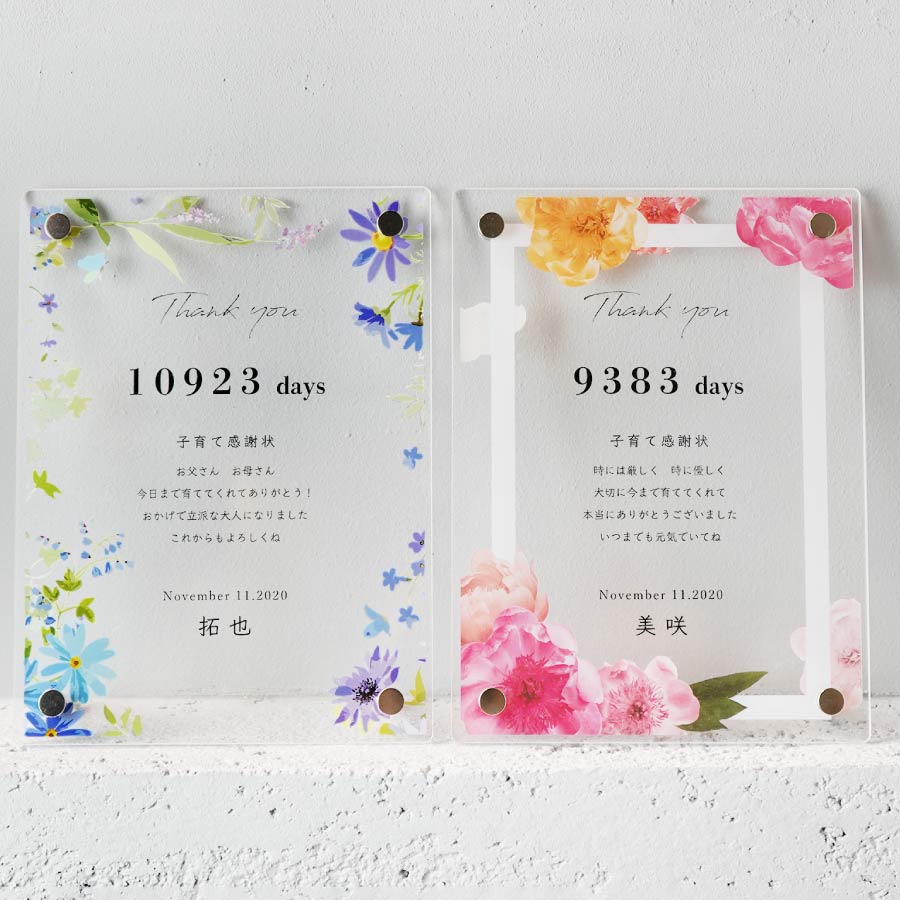 子育て感謝状 結婚式 フォトフレーム 名入れ おしゃれ 花 アクリル 両親へのプレゼント 挙式 披露宴 ウェディング ウエディング ブライダル ギフト 成人