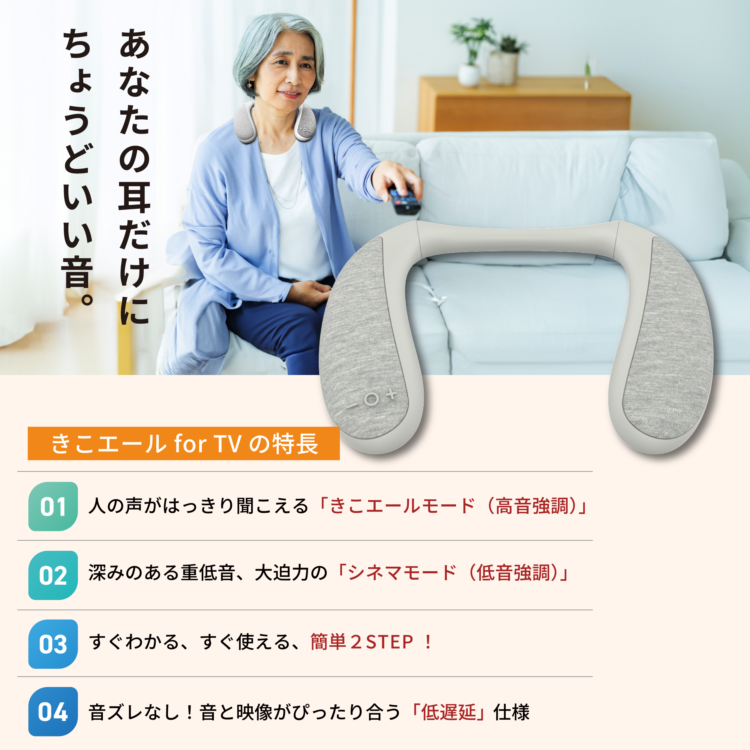 きこエール forTV 高齢者 テレビ用 ネックスピーカー 首掛け 日本メーカー シニア 聞こえづらい テレビ 耳元 スピーカー ワイヤレス かんたん