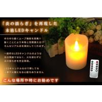 もちろんLEDなので倒しても火事や火傷になる心配もありません電池式なので煩わしいケーブルを心配する必要もなし!!お部屋のインテリアにはもちろん配線不要なので食卓にも設置可能♪3台セット商品サイズ:3個セット 約7.5×10cm 7.5×12.5cm 7.5×15cm重さ:約650g材質:蝋+ABS電源:電池単4×9本 別売りリモコン操作範囲:5m※仕様は改善の為に予告なく変更する場合があります送料 無料