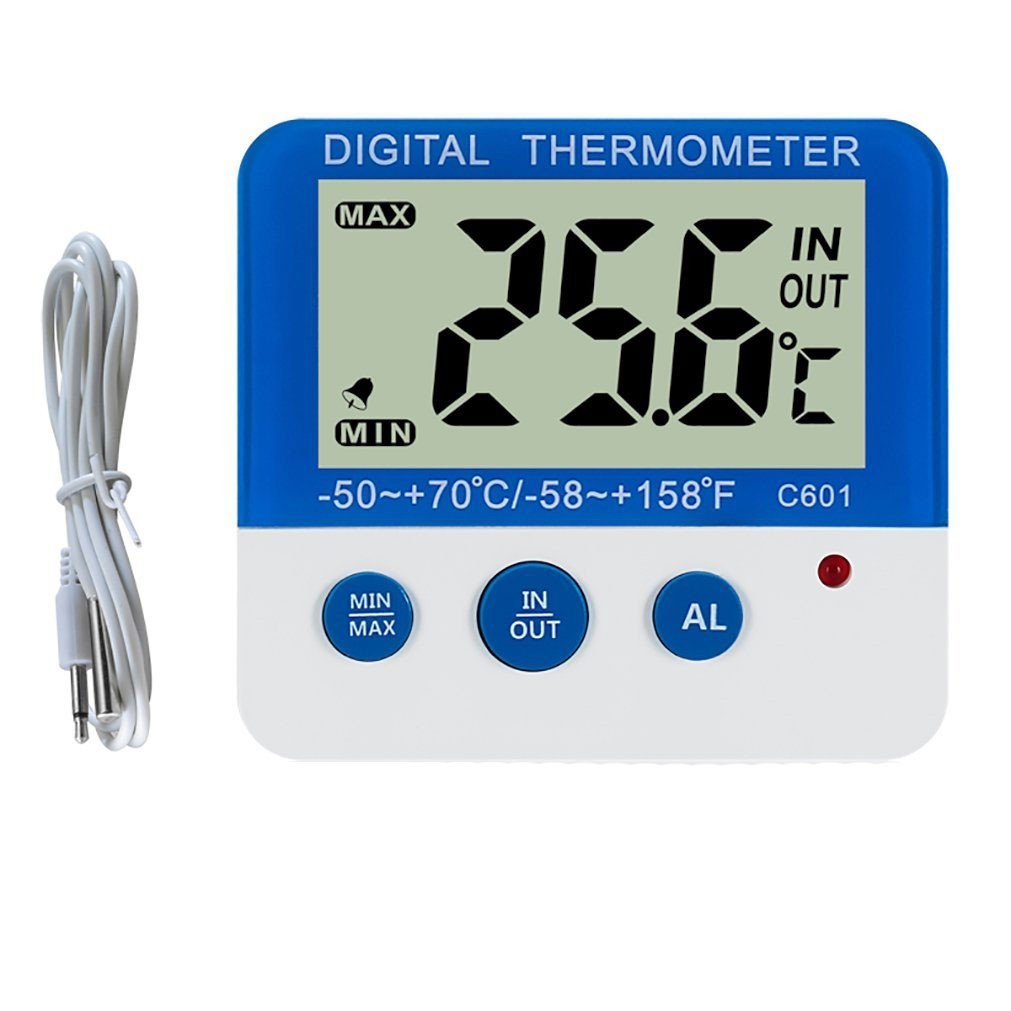 ◆LCD画面表示で見やすい◆内部温度範囲:-10~50℃ ◆外部温度範囲:-50~70℃ ◆温度精度:+/-0.5℃ ◆外部・内部温度の同時測定、IN/OUTボタンを押すと外内部温度の表示が切替ます ◆高低外部温度アラーム機能 ◆MIN/MAX外部内部温度の記憶機能、MIN/MAXボタンを押すとデータを簡単にチェックできます。 ◆初期設定された霜点警報温度:-1~4℃ ◆LEDインジケータライト ◆防水外部温度センサー(1m 取り外し可能) ◆卓上スタンドまたはスチール面に貼り付け(裏面マグネット付) 仕様素材: ABS樹 本体サイズ:長さ65×幅18×高さ60mm防水外部温度センサー:1m 重量:80g カラー:ブルー 梱包内容1 ×C601温度計 1 ×防水外部温度センサー *異常表示が発生した場合は、電池を取り出して2秒後に電池を戻してから、通常の表示に戻ります。 【クレジット決済のみ】 代引き決済の場合は送料755円発送前に加算させて頂きます