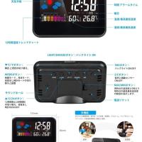 表示機能:温度/最高最低温度、湿度/最高最低湿度、時間、日付、目覚まし時計