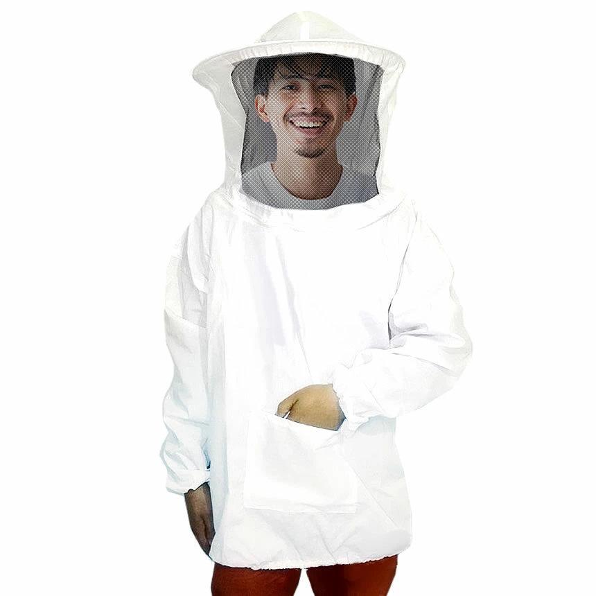 養蜂用 蜂 防護服 白 フェイスネット付き 害虫 フリーサイズ ホワイト 虫刺され 農作業 防護 草刈り 山 ガーデニング 屋外作業 蜂駆除 HOGOBATI-WH