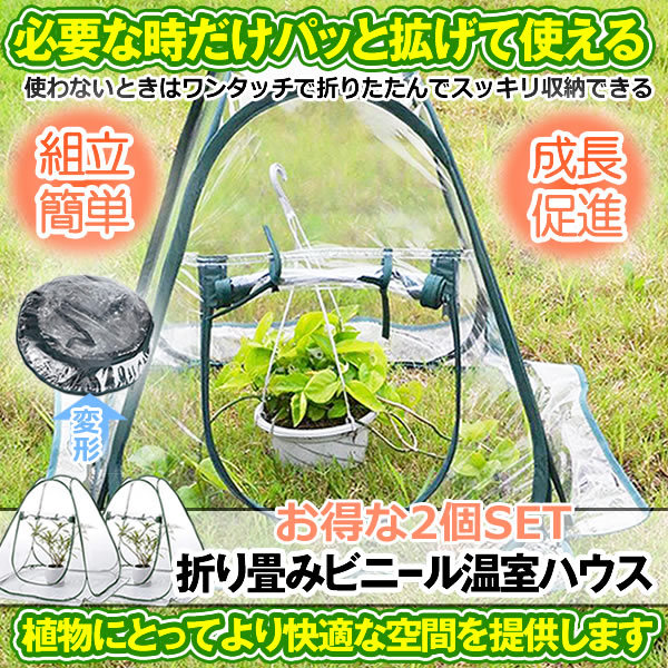 ビニールハウス 2個セット 温室 折りたたみ 家庭用 折り畳み フラワースタンド用 ミニガーデン 温室カバー 強風対策 UV防止 園芸用 家庭菜園 簡単組立 GRED
