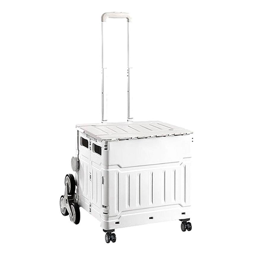 階段を楽々昇り降りできる万能型前輪3輪タイヤ採用の「キャリー4輪クルーザー」が凄い!ショッピングや旅行はもちろんレジャーや日常生活や災害時などいろいろな場面で使える超便利なカートボックスです。使わない時は折りたたんでコンパクトに収納できます。折りたたみ式キャリーワゴン頑丈で環境に優しいポリプロピレン製のシェルに錆びないアルミ製ハンドルを採用しております。どんな道でも転がりやすく丈夫で長持ちする耐圧ゴム製車輪(より丈夫で軽量 静音)を備えています。実用的な台車コンパクトで最大50KGまでの小物の運搬に適しています。