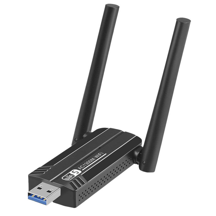 外部ダブルWiFiアンテナ AC1300MpbsUSB WiFiアダプターは家全体に長距離で遅延のない接続を提供します。PCまたはラップトップを802.11ac標準にアップグレードします。これは、ワイヤレスWi-Fiアダプターの速度の3倍の速度です。超高速WiFi速度USB 3.0インターフェースを搭載しているためPC用のWIFI USBアダプターのWIFI速度はUSB2.0を備えたPCWIFIアダプターの10倍です。デュアルバンド5.8GHzおよび2.4GHzバンドWi-Fi速度を2.4GHz帯域で最大400Mbps5.8GHz帯域で最大867Mbpsにします。2つの5dBi高利得アンテナ2×5dBiアンテナを適用し古いデスクトップWIFIアダプターよりも幅広い接続に拡張できます。