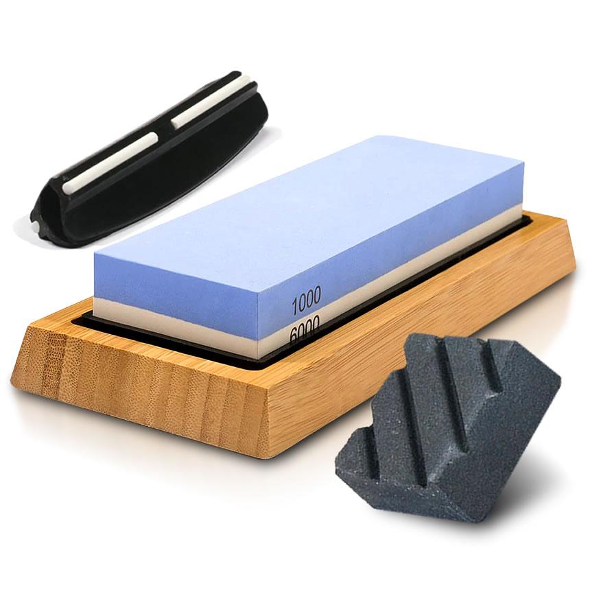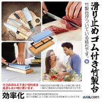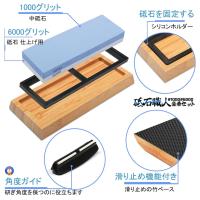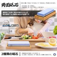両面砥石砥石に書いてある「#1000」や「#6000」が粒度になります。「#1000」を「中砥石」「#6000」を「仕上げ砥石」と呼びます。通常包丁を研ぐ時は中砥石と仕上げ砥石最低でも2種類の砥石が必要です。両面砥石は中砥石(#1000)と仕上砥石(#6000)が一緒になった優れた砥石です。中砥石は切れ味が悪くなった時に使います。一般のご家族なら中砥石があれば十分です。仕上砥石はより良い切れ味を追求したい時に使います。砥石にさまざまな粒度があるのは包丁の状態によって使い分けた方が効率がいいからです。滑り止めゴム付き竹製台竹製台がついている砥石です。※北海道・沖縄県は別途送料が必要になります。