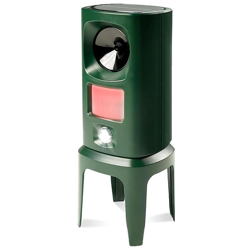 超音波動物撃退器は超音波の原理を利用して野生動物を刺激し不安を感じて逃げさせます。センサー式で動きを感知して追い払う例えば中庭にマシンを配置し野良猫や犬などの野生動物が近づくとデバイスが自動的に検出し周波数変換超音波やLEDフラッシュランプなどが発動します。超音波は人間には聞こえにくいですが野生動物には敏感に聞こえ反応する仕組みとなっております。※音は野生動物の聴覚や健康に悪影響を与えることはありません。ソーラーパネル搭載でバッテリーが切れる心配不要上面に太陽光パネルが搭載されており昼間に太陽の光で自動充電します。付属品本体x1(約8x22x8cm 横x縦x奥行)バッテリー電池3本内蔵(800mAh 1.2vx3本)USB充電ケーブルx1(約45cm)英語説明書付属x1