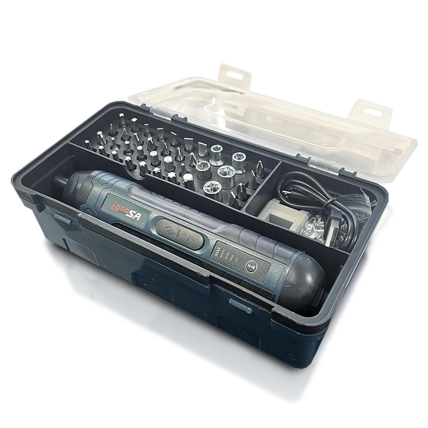 正逆転切替 電動ドライバー 小型 電動ドリル ビット32種類 ネジ60点 LEDライト USB充電式 4段階トルク DIY ケース付属 105DOREISET