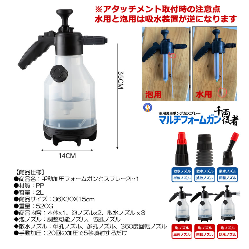洗車 ハンディ 高圧洗浄機 6種類アタッチメント 泡 噴霧器 手動式 泡洗車 洗浄器 高圧 フォームガン 2IN1SUPU