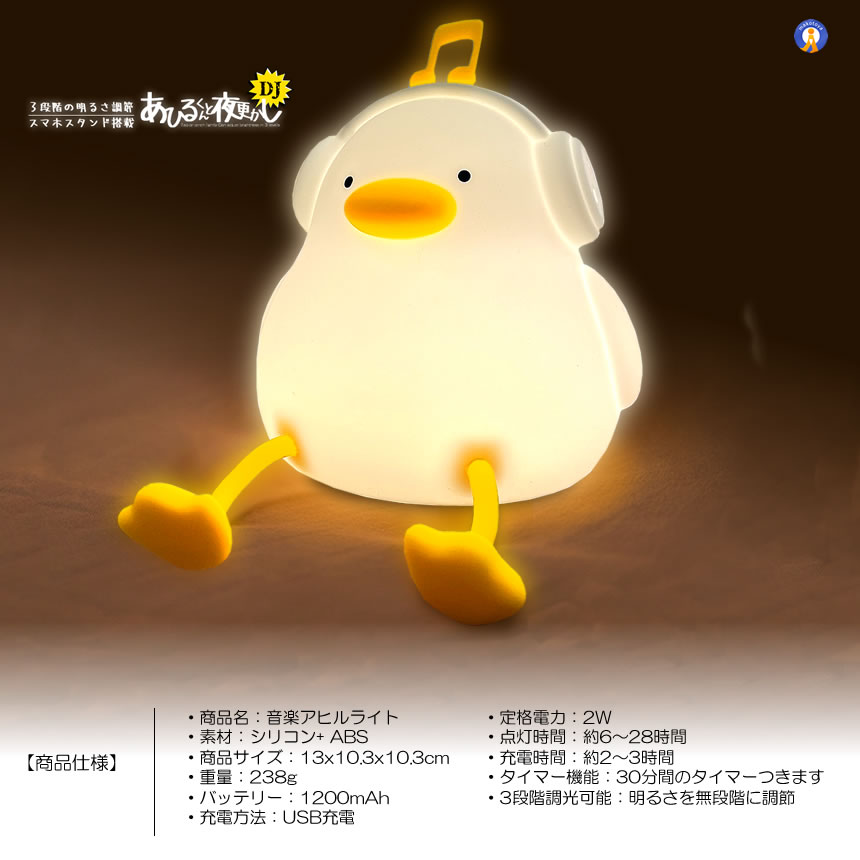 アヒル ライト DJ 音楽 ナイトライト 充電式 照明 テーブルランプ デスクライト ぷにぷに アヒル照明 DUCKMUSIC