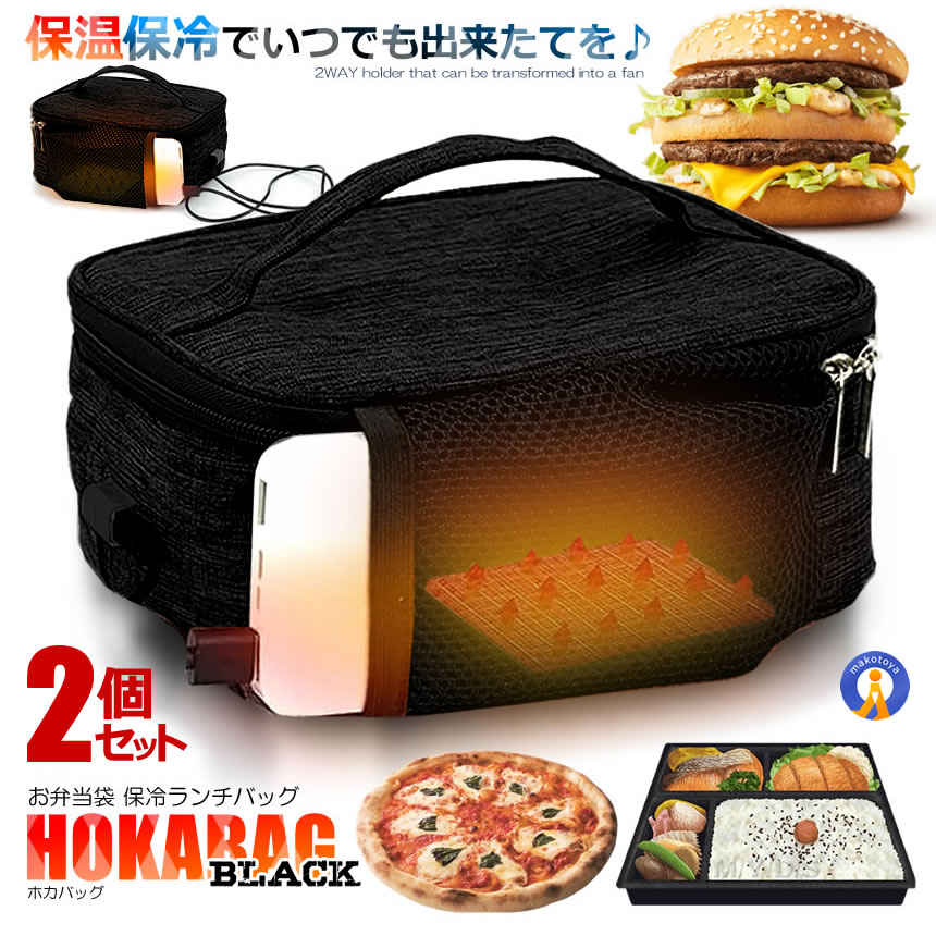 2個セット 保温バッグ お弁当 USB給電式 保冷 保温 2.5L 50度まで保温 大容量 軽量 防水 持ち手付き WARMBAG