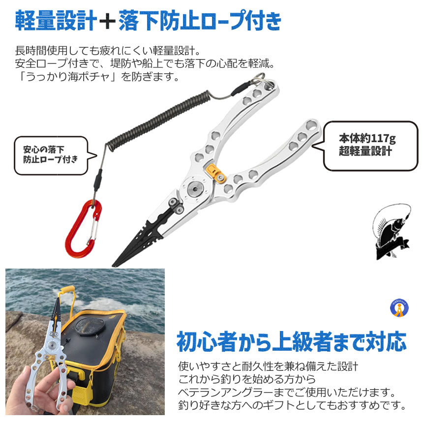 フィッシングプライヤー 防錆 軽量 多機能 釣り用 ペンチ 針外し 収納袋付き アルミ製 釣具 エギング ジギング FISHPURAI