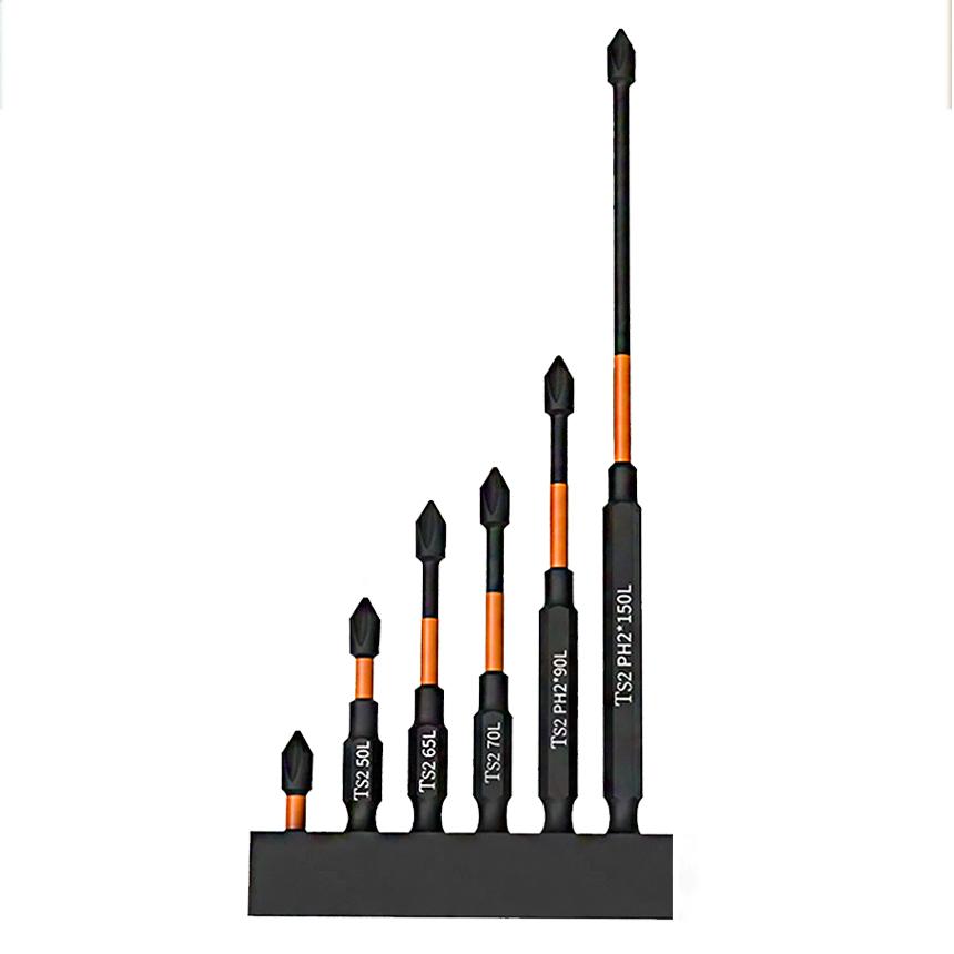 【商品説明】♪6本組 ビットセット♪・プロ用マルチサイズ:25mmから150mmまで汎用性の高いサイズをご用意!※ネジのサイズが異なると、ドライバーやネジが破損することがあります。 正しいドライバービットを使えば、より少ない力で簡単にネジを外すことができます。=============【商品仕様】材料:S2 合金鋼軸径:6.35mm六角軸 (1/4インチ)サイズ:25mm/50mm/65mm/70mm/90mm/150mm※日本語説明書は付属しておりません。※モニターにより色合いが若干前後する場合がございます。※輸入品ですので多少の臭いやスレ傷、汚れはご了承ください。※サイズは実寸ですが若干前後する場合がございます。