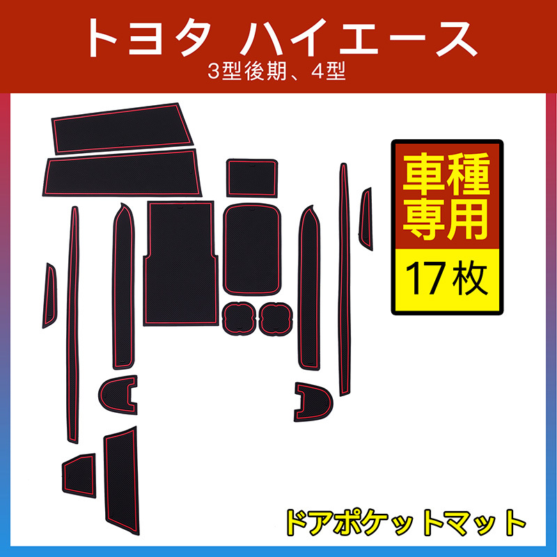 ハイエース200系 3型後期、4型 スーパーGL(標準) ドアポケットマット/シート 滑り止め インテリアラバーマット 内装用マット ドレスアッパーツ アクセサリー