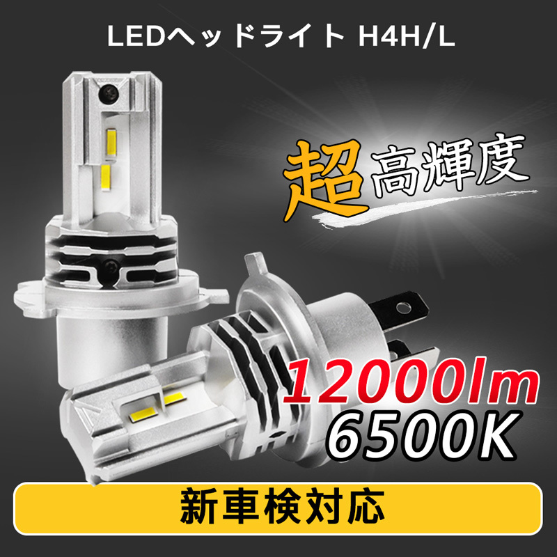 超高輝度 LEDヘッドライト ファンレス H4 Hi/Lo 新車検対応 汎用 ホワイト 一体型 ポン付け 12V ファンレス コンパクト 送料無料