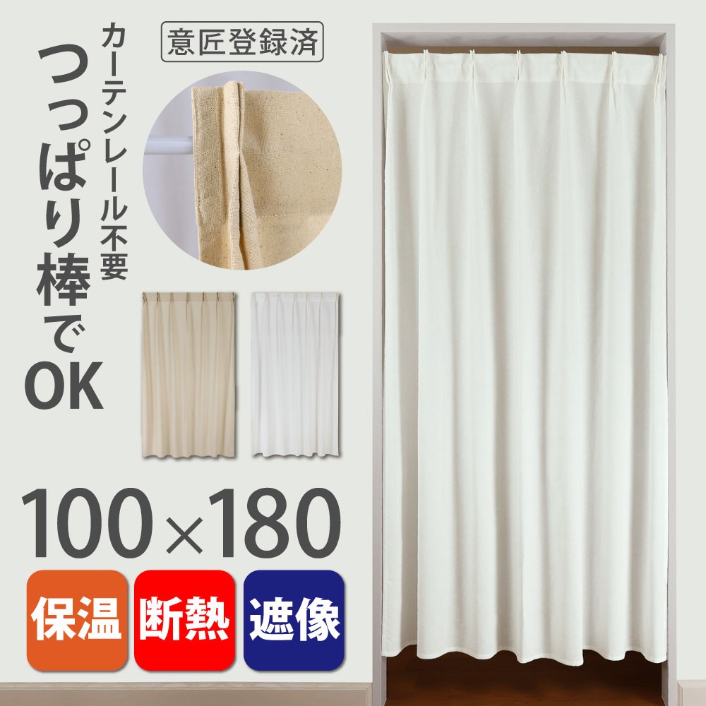 タック間仕切りカーテン コトン 100cm幅×180cm丈 1枚入 無地 保温 断熱 遮像 天然素材 綿 コットン ドア 細窓 ロング丈 縦長