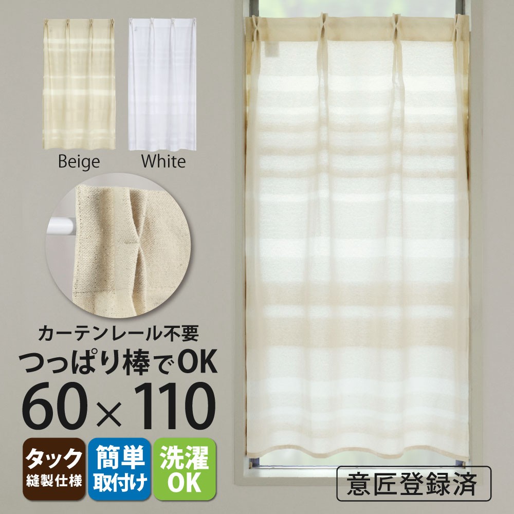 タックカフェカーテン シアリー 60cm幅×110cm丈 1枚入 ボーダー 縞 天然素材 綿 コットン ポリエステル 小窓 細窓 縦長 レール不要