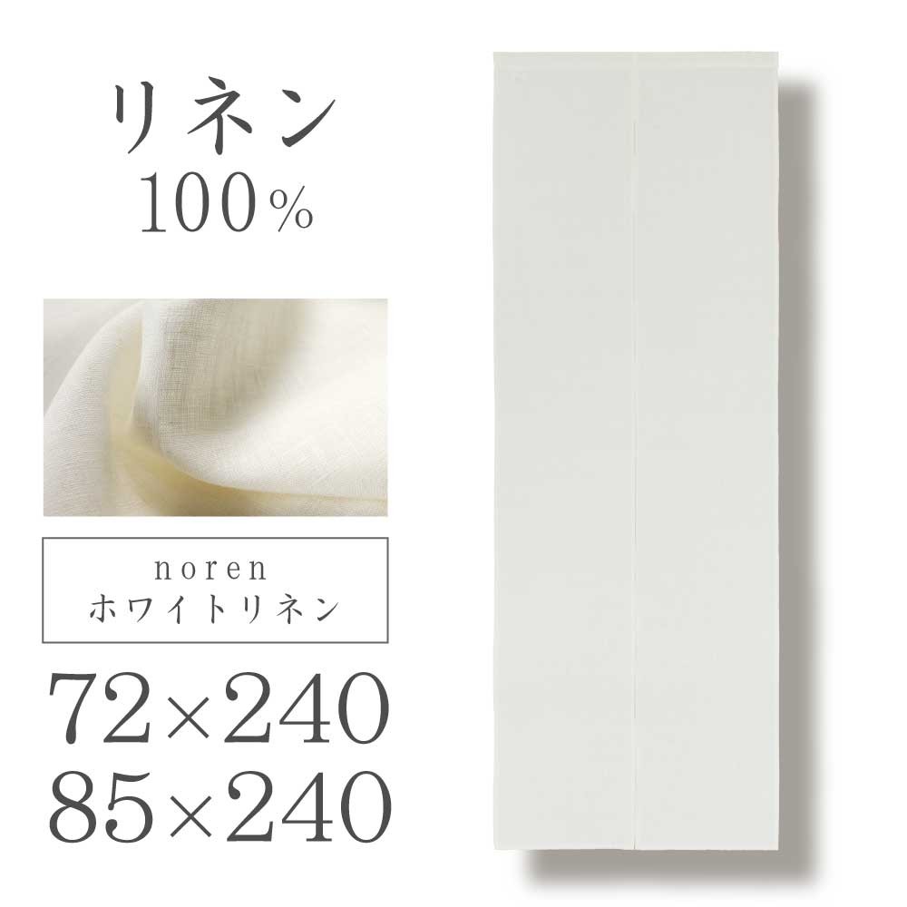 のれん ホワイトリネン 72×240cm・85×240cm 1枚入 暖簾 天然素材 リネン100% 麻 リビング 玄関 ドア 階段 無地 シンプル ナチュラル 目隠し 間仕切り 白