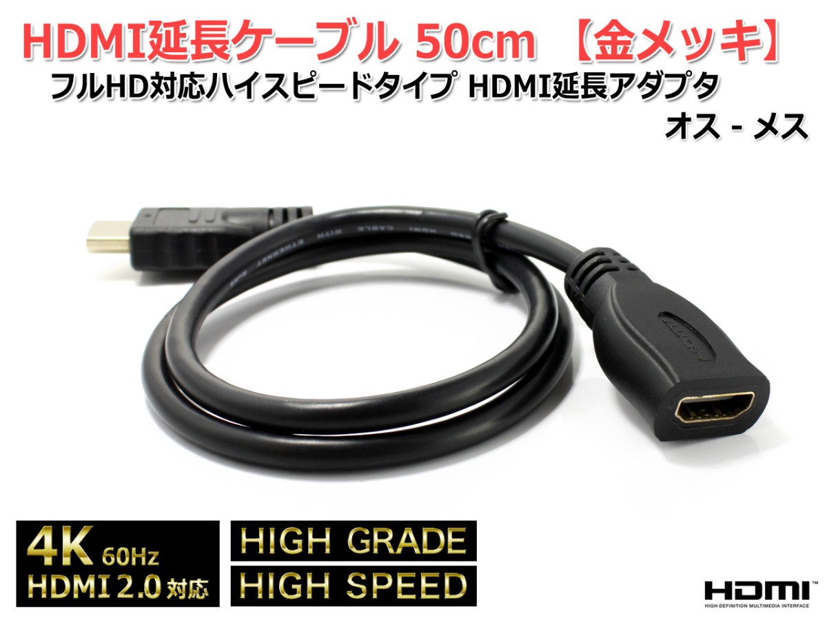 【商品詳細情報】コネクター部含む全長約50cmのHDMI延長ケーブルです。