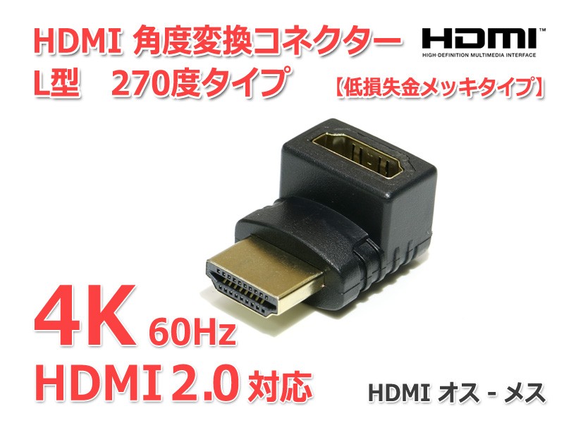 HDMI 角度変換コネクター L型 270度タイプ(上向き)HDMI2.0対応 4K画質/60Hz対応 オス-メス『金メッキ』です。