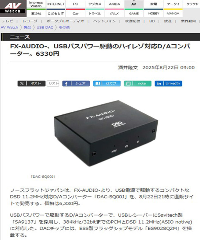 ◆『 NFJ公式ブログ記事 新製品のご案内 』USBバスパワー駆動でDSDネイティブ再生に対応した、DACのハイスペック&コンパクトモデル