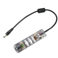 ACアダプター等の電源装置とデバイスの間に接続する事で、電源装置からの出力に含まれるノイズ成分を除去しクリーンになった電力の供給を図る汎用のアクセサリーパーツ