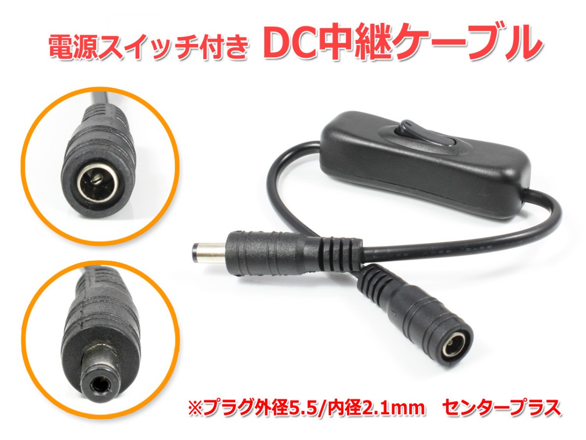 DCプラグ延長タイプの中間スイッチです。電源スイッチの無い機器に、外部的にスイッチをつけることが出来る便利アイテムです!ACアダプターのプラグと電子機器のDCジャックの間に入れることで、電源操作が可能に!