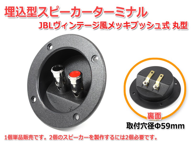 こちらは古いJBLスピーカーによく採用されていた形状のプッシュ式のターミナルです。レトロ感のあるスピーカーやJBLルックなスピーカーの製作、JBLスピーカーの修理用としてもいかがでしょうか?