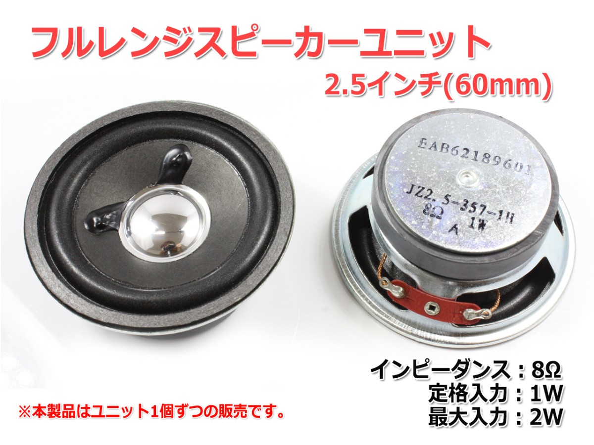 >>取扱スピーカーユニット一覧はこちら【商品詳細情報】2.5インチ(60mm) 8Ω/最大2W のフルレンジスピーカーユニットです。