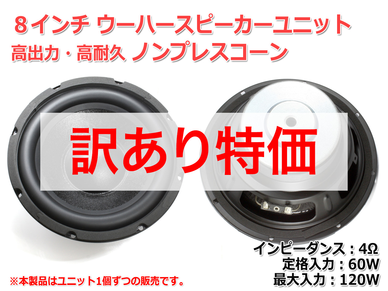 大口径の8インチ(外径21cm)のパワフルなノンプレスコーン ウーハーユニットが入荷しました!!