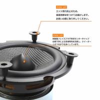 高耐久ゴムエッジ仕様でオフセットも十分、樹脂製フェイズプラグ形状のセンターキャップによりコーンの位相調整及び高域特性を改善しています。