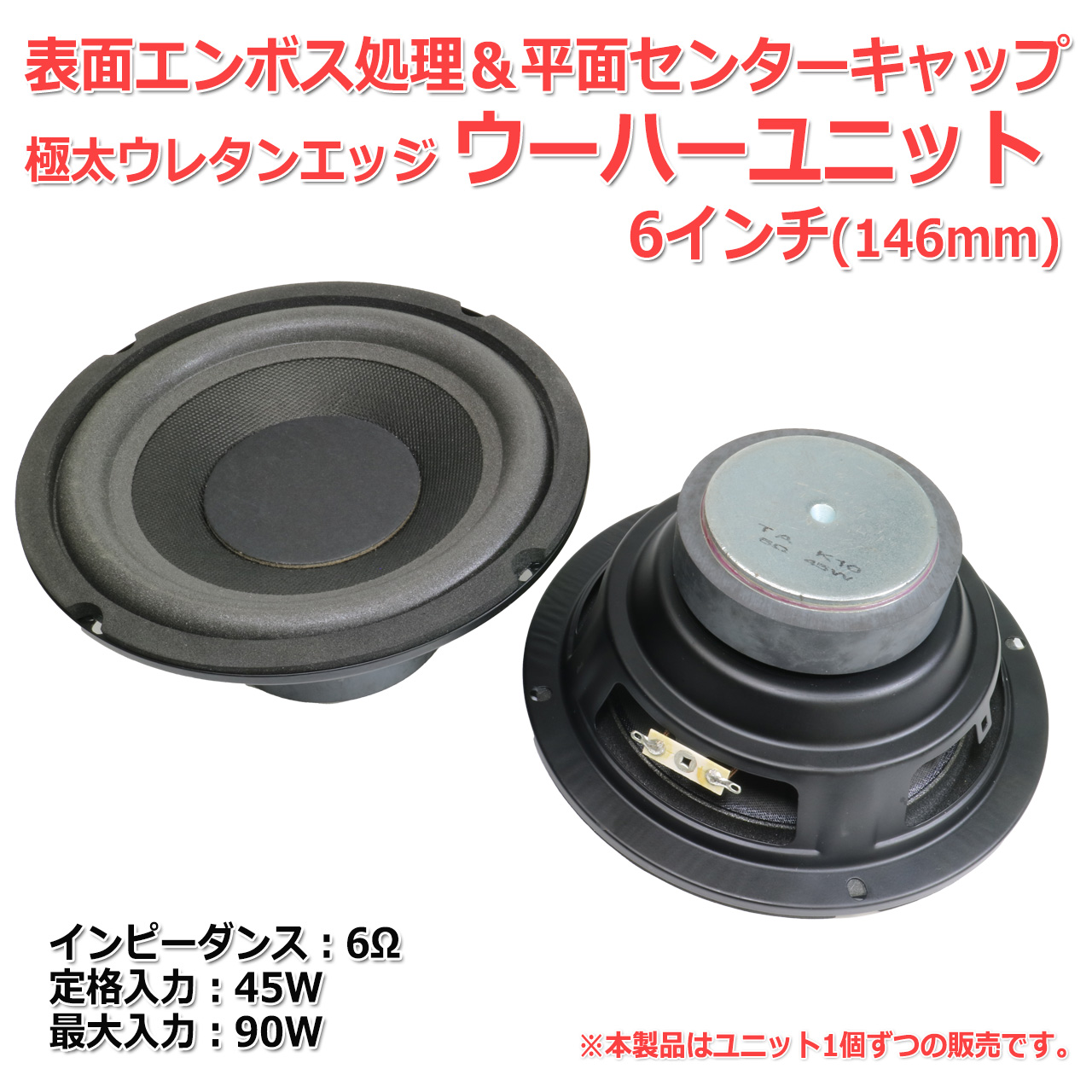 >>取扱スピーカーユニット一覧はこちら【商品詳細情報】6.5インチ(146mm) 6Ω/最大90W のウーハーユニットです。