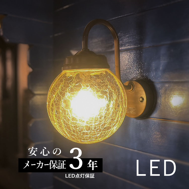 人気のLED外灯センサなし。 アンティーク風ひび焼きガラス照明 クリアガラスの表情が魅力のアーム意匠のポーチ灯。アンティークな雰囲気が個性的に彩ります。