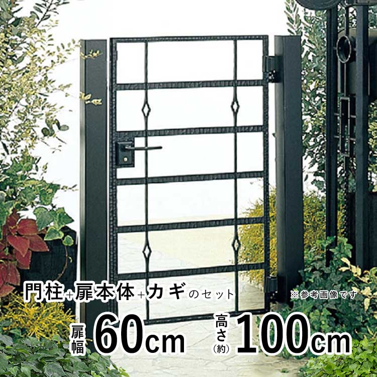 門扉 鋳物門扉 片開き おしゃれ 門扉フェンス ブルーム 16型 門柱タイプ 四国化成 アルミ アイアン風 0610 幅60cm 高さ約100cm