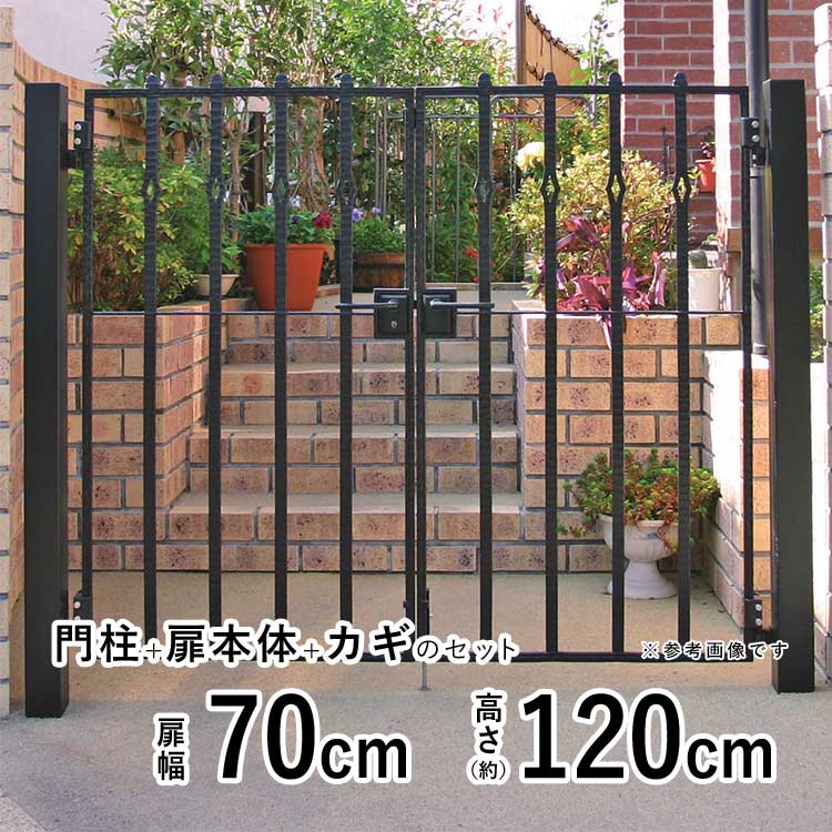 門扉 鋳物門扉 両開き おしゃれ 門扉フェンス ブルーム 18型 門柱タイプ 四国化成 アルミ アイアン風 0712 幅70+70cm 高さ約120cm
