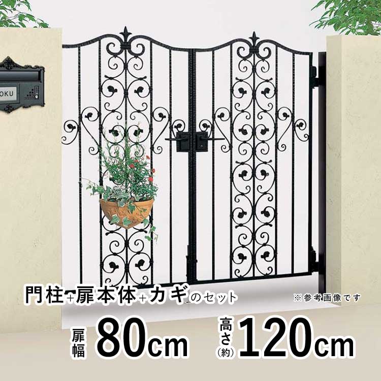 門扉 鋳物門扉 両開き おしゃれ 門扉フェンス ブルーム 6型 門柱タイプ 四国化成 アルミ アイアン風 0812 幅80+80cm 高さ約120cm