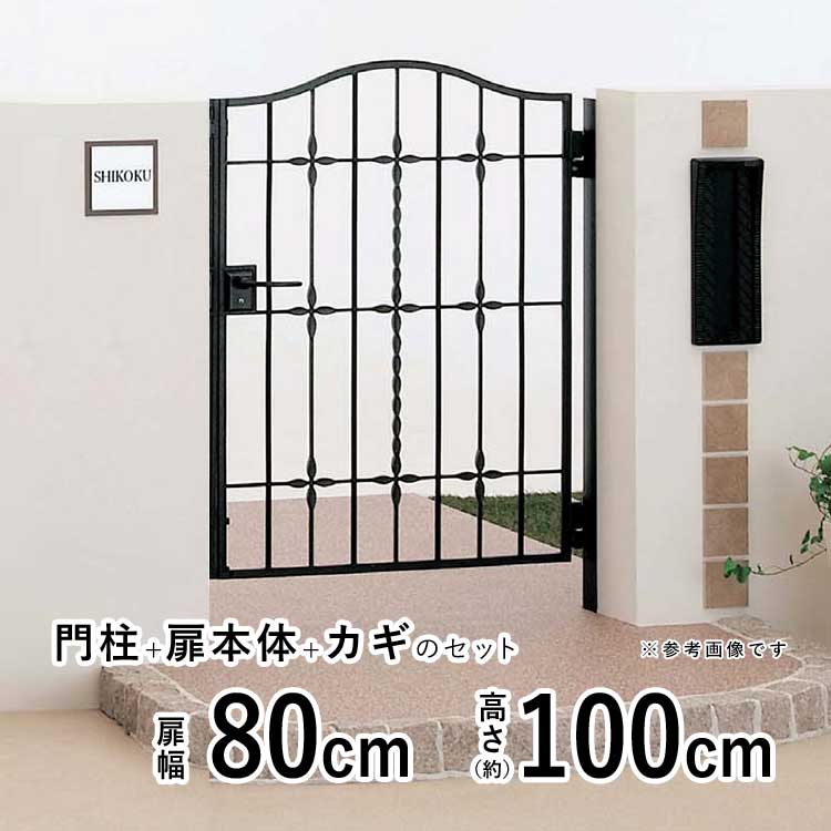 門扉 鋳物門扉 片開き おしゃれ 門扉フェンス ブルーム M5型 門柱タイプ 四国化成 アルミ アイアン風 0810 幅80cm 高さ約100cm