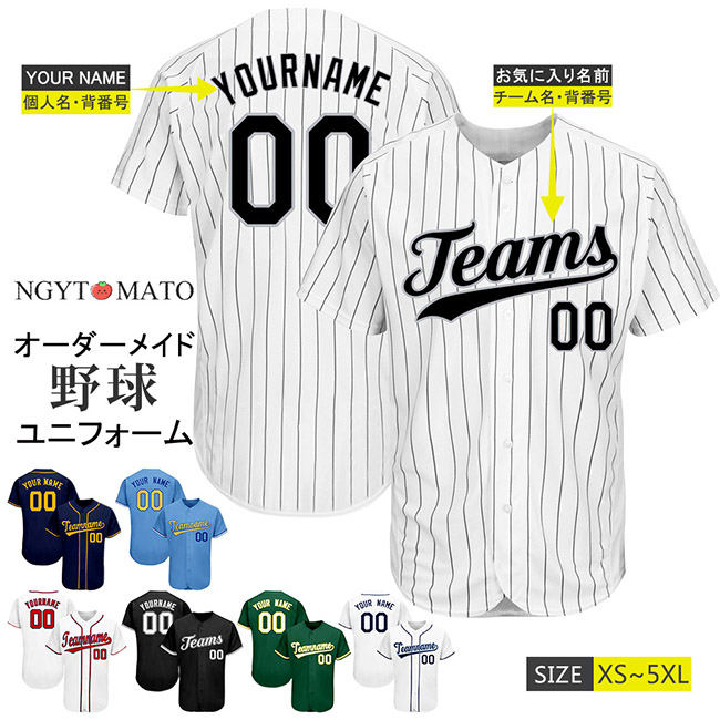 オーダーメイド可能 野球 ユニフォームシャツ 練習着 フルオープン チーム名 ネーム 番号入り 野球ユニフォーム 練習着シャツ 半袖 トレーニング 応援グッズ